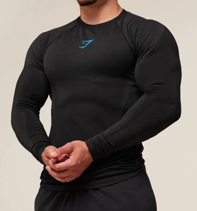 Men's Fitn Training Suit Elastic round Ne Long Sve T-irt Gym Running Sportswear Slim Fit Faion Print Casual irt